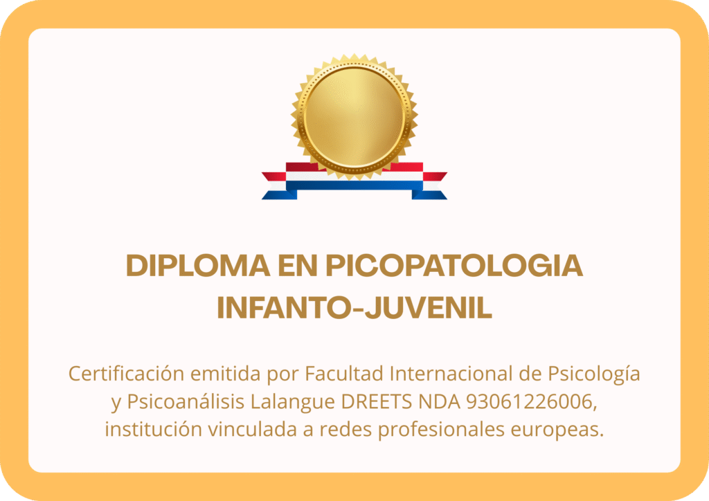 Nuestros títulos son otorgados por la Facultad Internacional de Psicología y Psicoanálisis Lalangue, extensión hispanoparlante de la institución francesa EFPP (E-Faculté de Psychologie et Psychanalyse), con más de 25 años de trayectoria y aval europeo.